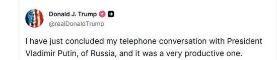 在16日稍晚时,美国总统特朗普在其个人社交媒体平台上发布了同俄罗斯总统普京当天通话的内容,并积极表态称,此次通话非常富有成效。在特朗普相关声明发出后不久,俄罗斯总统特使德米特里耶夫也发声表示,两国总统的通话“积极且富有成效”,双方明确了下一步的行动方案。