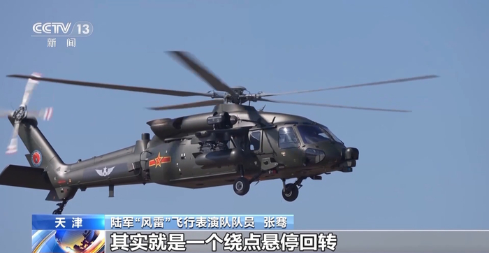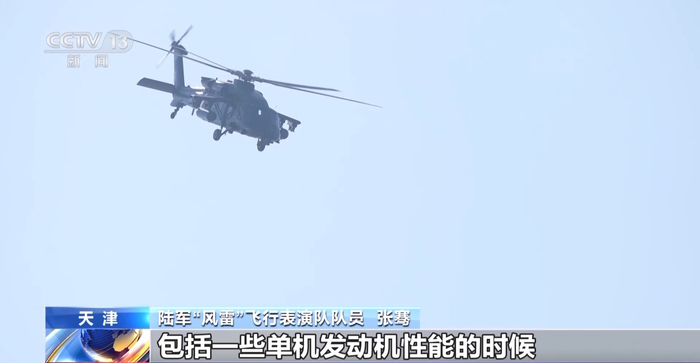陆军“风雷”飞行表演队队员 张骞:我们在展示它的突击能力的时候,包括单机发动机的性能的时候,动作体现出它发动机的跟随性特别好。它的自由涡轮的瞬间发热能力、转化成热功率的能力,包括它的复合材料的旋翼结构发出来的声音,包括它做一些动作的速度、频率、快慢,专业人员能看到这款机型的跟随性、飞控反应品质做得都非常好。