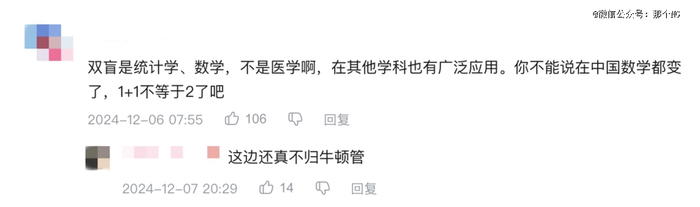 一位高中学历的自学中医宝妈,在陕西省咸阳市某县城卖瓜子为生,对“双盲对照试验”颇为不满,原因是“这是西医的标准,规则是西医定的,不公平”。