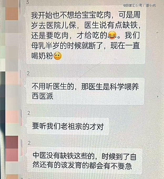 孩子被医院检查出营养不良缺铁,但宝妈依旧坚持不给孩子吃肉,群友们纷纷助力:西医亡我之心不死,千万别相信西医的科学喂养,中医根本不存在缺铁的概念。