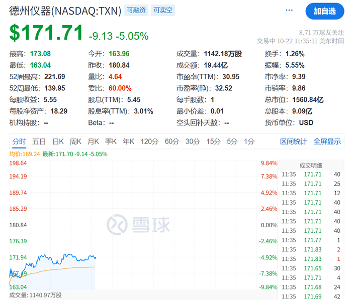 10月22日晚间,美股三大指数开盘后不久,持续跳水,道指微跌100点,纳指跌幅扩大至1%左右,标普500指数跌约0.5%。