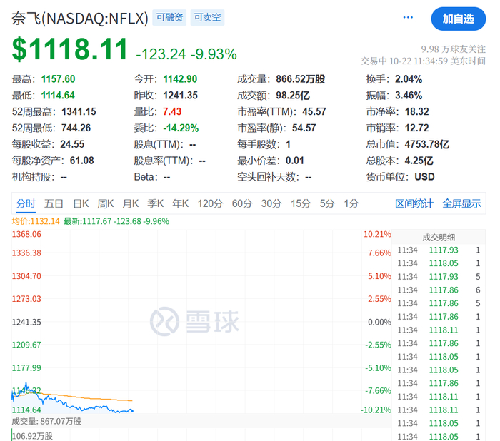 【导读】美股跳水,奈飞暴跌,黄金继续暴跌