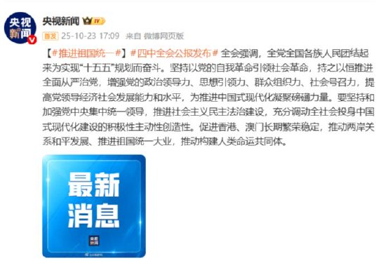 中国共产党第二十届中央委员会第四次全体会议,于2025年10月20日至23日在北京举行。