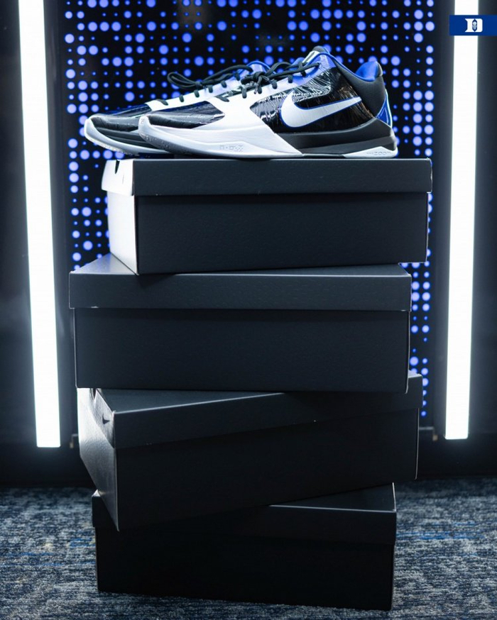 直播吧10月29日讯 杜克大学篮球队官方社媒更新动态,晒出了球队新赛季的第三款Kobe 5的PE配色球鞋。