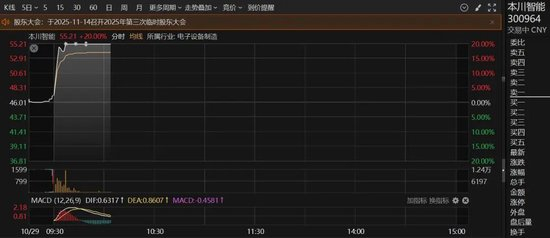 6G概念异动,本川智能(300964直线拉升“20cm”涨停。