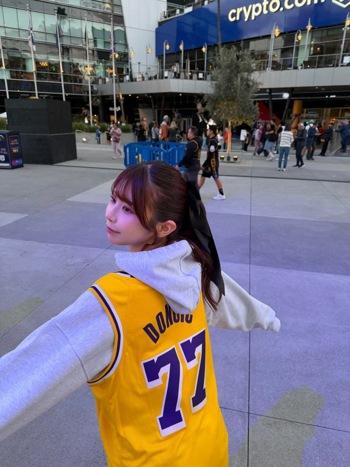 本赛季湖勇揭幕战身穿东契奇球衣、坐在詹姆斯身后的库里球迷——日本“女演员”葵伊吹,吸引了广大球迷的关注。相信通过虾酱之前的介绍,大家已经拜倒在她甜美脸蛋和傲人身材之下了。