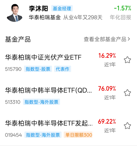 公开资料显示,李沐阳为华泰柏瑞基金基金经理,其管理的华泰柏瑞中证光伏产业ETF规模庞大,2025年三季度末合计规模达139.76亿元。