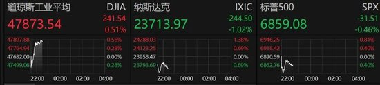 Meta下跌13%,公司第三财季净利润为27亿美元,远低于分析师预期,公司计划通过债券发行筹集至少250亿美元。谷歌涨超6%,公司三季度营收、利润以及全年资本开支指引均超出分析师预期,多个主要业务实现两位数百分比增幅。
