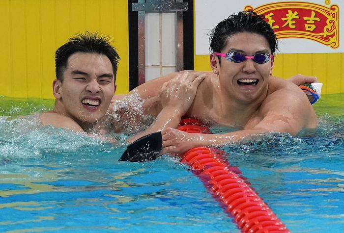 关于能够刷新PB(个人最好成绩)、拿到冠军,郑英昊归功于刻苦的训练以及整个团队的互帮互助,他透露:“这次全运会前,我们上了三次高原(进行训练),比较有效,我们几名蛙泳选手之间也非常团结,闫队、佳俊哥、海哥都非常优秀,也愿意将经验分享给我,作为后辈,我尽量吸收(这些经验)。”