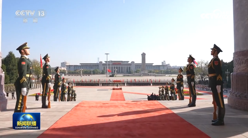 11月14日上午,国家主席习近平在北京人民大会堂会见来华进行国事访问的泰国国王哇集拉隆功。