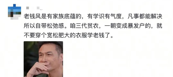 穿搭上,“老钱风是想穿啥我就买啥,老穷风则信奉,我有啥就往身上套啥”。