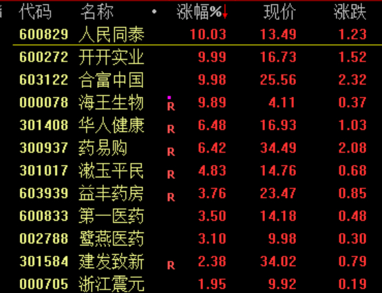 医药商业股拉升,人民同泰、海王生物等涨停。