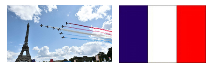 法国“巡逻兵”飞行表演队国旗色拉烟与法国国旗