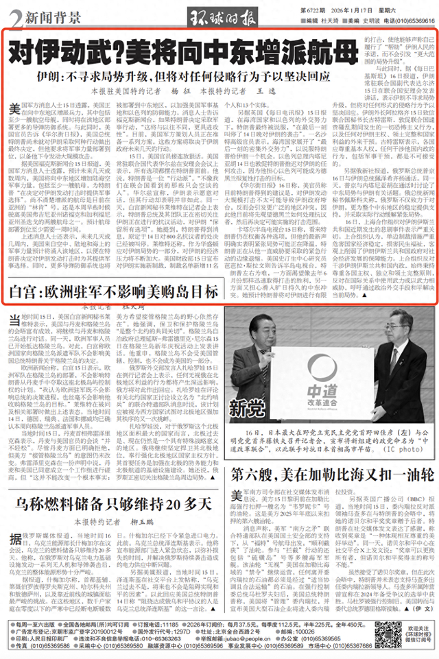 15日,美国官员接连放狠话。美国常驻联合国代表华尔兹在安理会会议上表示,所有选项都摆在特朗普面前。他说,特朗普是一位“行动派”,“不像我们在联合国看到的那些只会空谈的人”。华尔兹宣称,伊朗表示愿意对话,但其行动却表明并非如此。同一天,白宫新闻秘书莱维特在记者会上表示,特朗普总统及其团队正在密切关注伊朗正在进行的抗议活动,对伊朗“保留所有选项”。她提到,特朗普得到消息,原定于14日对800名抗议者的处决已经被叫停。莱维特还称,作为华盛顿应对伊朗局势的一部分,对伊朗的经济压力将不断加大。美国财政部15日宣布对伊朗实施新制裁,制裁名单新增11名个人和13个实体。