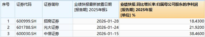 此外,招商证券、光大证券、中信证券已披露2025年业绩快报。