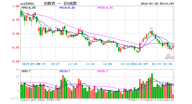 1月30日,创新药ETF(159992)开盘跌0.24%,报0.846元。创新药ETF(159992)重仓股方面,药明康德开盘跌0.17%,恒瑞医药跌0.19%,华东医药跌0.65%,复星医药涨0.00%,科伦药业跌0.03%,百济神州涨0.70%,长春高新跌0.10%,康龙化成跌0.69%,泰格医药涨1.99%,艾力斯涨0.80%。