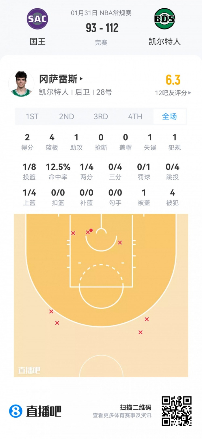 凯尔特人首轮28号秀冈萨雷斯 登场22.2分钟