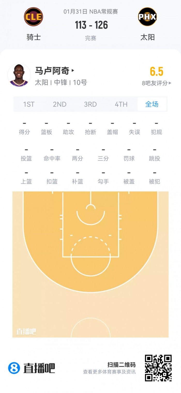 太阳首轮10号秀马卢阿奇 登场2.7分钟