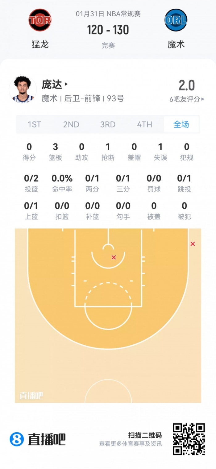 魔术次轮32号秀诺厄·庞达 登场6.5分钟