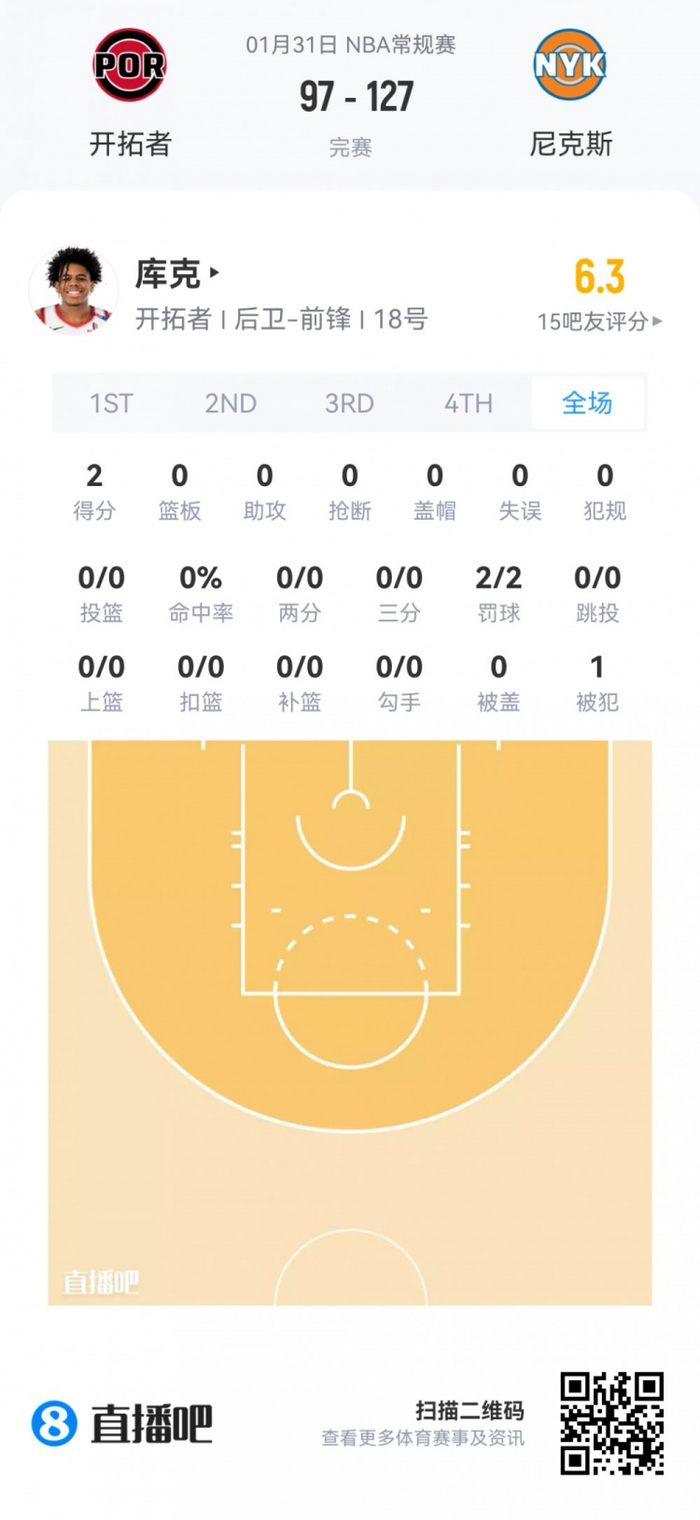 开拓者落选秀贾旺特·库克 登场4.1分钟