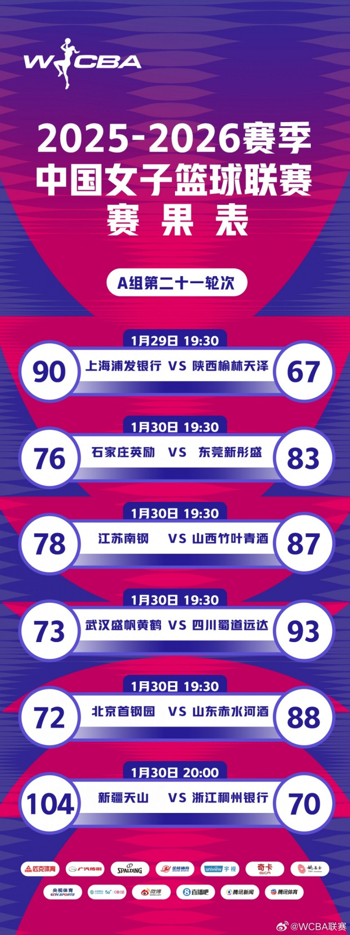 2025-2026赛季WCBA联赛第二十一轮赛果来啦