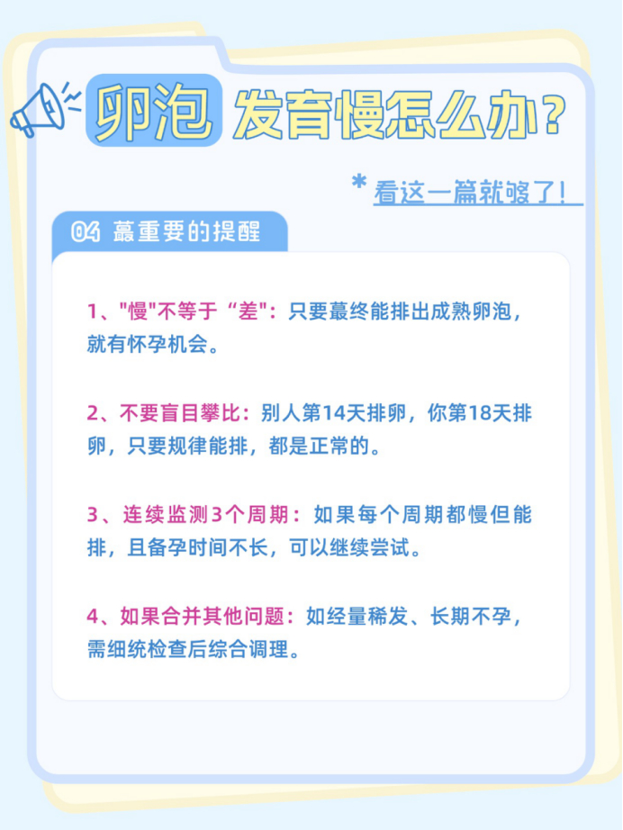 备孕是一场 “持久战”,卵泡调理也需要时间(通常 3-6 个月)。不必因为一两个周期的卵泡发育不佳而焦虑,找准原因、科学干预,耐心等待,属于你的 “优质卵泡” 总会如约而至。