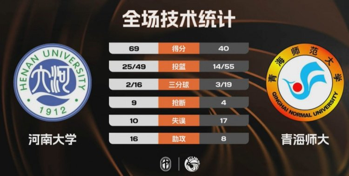末节青海师大总算找回感觉,曾亿婷外线接连命中三分,但在巨大的劣势之下他们很难制造威胁,而河南大学稳定输出,谷云舒稳定拿分帮助球队保持大比分领先,后半段虽然进攻端哑火但对手也没能拿分。最终,河南大学69-40大胜青海师范大学取得胜利。