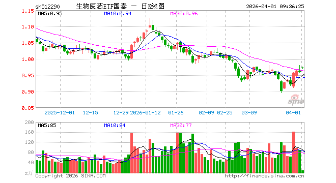 生物医药ETF国泰(512290)开盘涨1.46%,重仓股药明康德涨2.00%,恒瑞医药涨1.47%